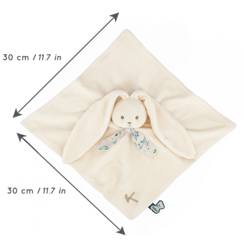 Con 30 cm de altura, este adorable conejito le brindará amor y ternura a tu hijo. Su diseño bimaterial combina pana suave con viscosa ligera, proporcionando una suavidad y comodidad inigualables. Este doudou con forma de conejito irradia una refrescante delicadeza y tiene un estilo refinado y elegante. Su pequeña bufanda le da un toque original y le añade un toque de carácter.