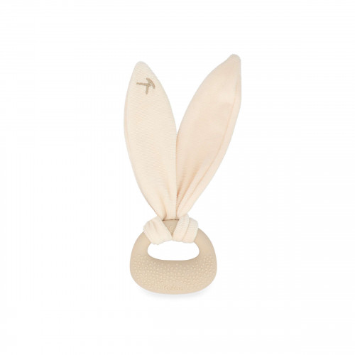 Este bonito anillo de dentición de conejo de silicona es ideal para aliviar el dolor de los dientes que le están saliendo al bebé. Se adapta perfectamente a las pequeñas manos del bebé gracias a su tamaño de 7 cm de alto y 8 cm de ancho. Su forma redondeada y blanda le permite adaptarse a las pequeñas bocas de los bebés. Diseñado para el bienestar del bebé, está compuesto por 2 texturas. Totalmente liso por delante y con bultitos en la parte posterior para favorecer la salida de los primeros dientes y masajear las encías doloridas. El bebé puede agarrar fácilmente las grandes y suavísimas orejas que también se pueden enganchar en cualquier lugar a donde vaya el bebé. Además, las orejas son desmontables para facilitar el lavado. Lavables a máquina a 30 °C.
