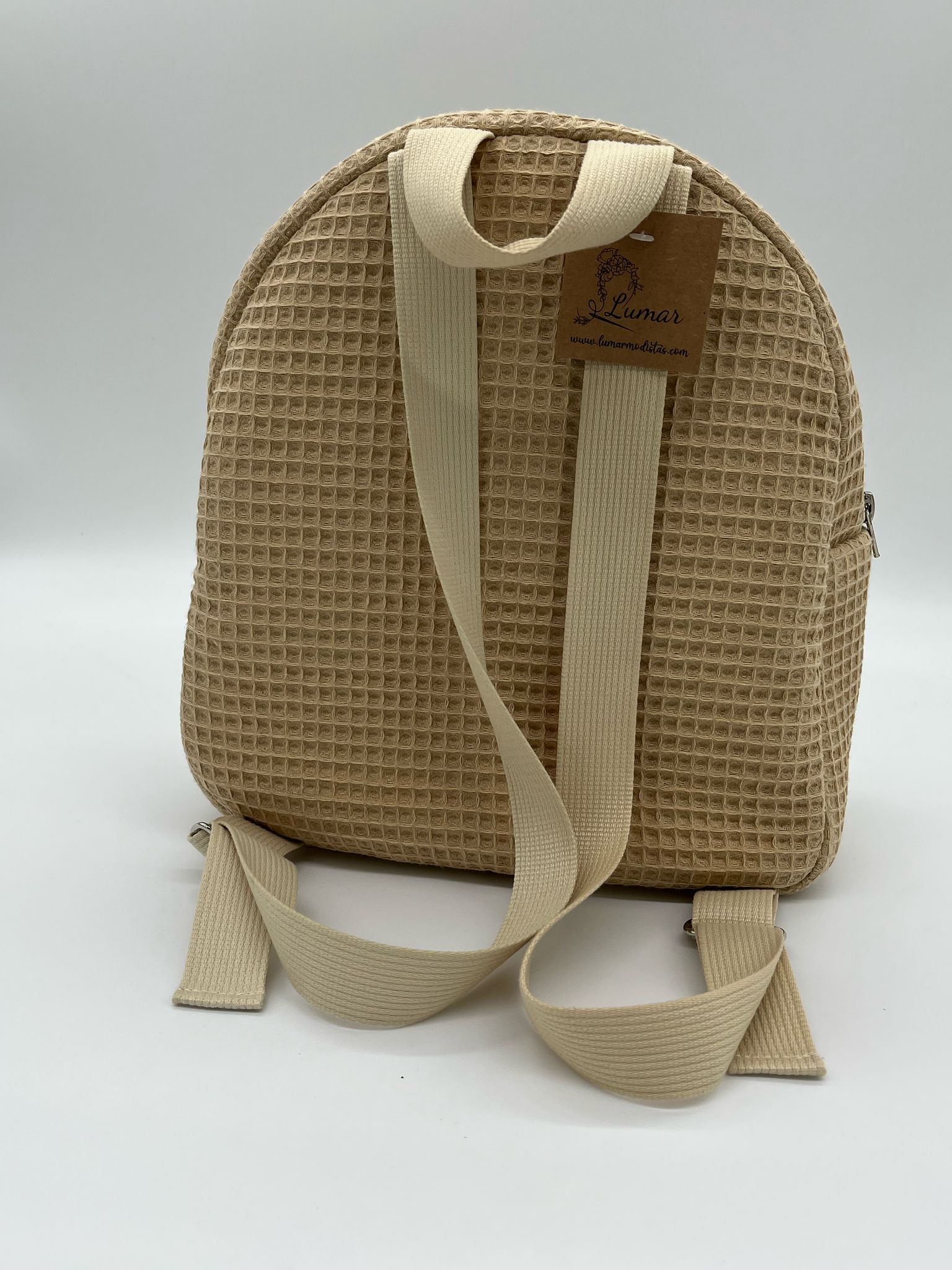 Cierre con cremallera, interior en forro hidrófugo, asas de cinta graduables y cinta superior para colgar.